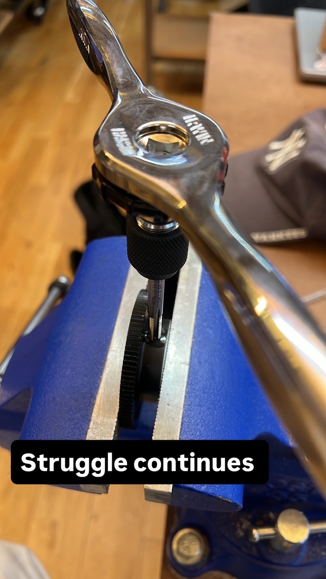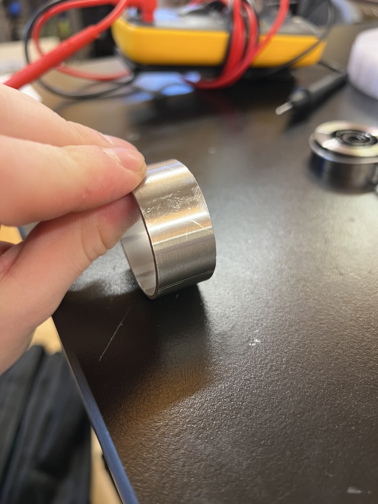 One of the most fun (and mentally blocking parts) was cutting the rod to length. In my mind I had it built up like the precision of the cut mattered a lot. I realized after that I had no requirement for linear precision becuase it was not a mating surface or a reference plane. The most important radial reference was already established. I cut my rod lengths for the supporting rotational gears with cutting fluid and the metal blade chop saw. I used the rotating sander to put a fine champfer on the ends when I cut them to length. This was my favoriter part