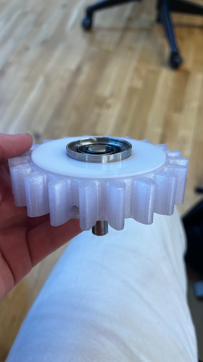 As I put the pieces I had made together, I realized the piece I had made would not rotate. I had previously made the retaining plate for my rotational chamber an eigth of an inch so I could create it from lasercut acrylic. Now I was just producing it on the 3d printer. Another problem I had when it was all together was the protrusion of the flat m3 screws. They were not indented enough to be flush. Increasing these two aspects, as well as shimming my delrin with layers of sticky tape, reduced the friction enough so that the rotational aspect of the piece could operate