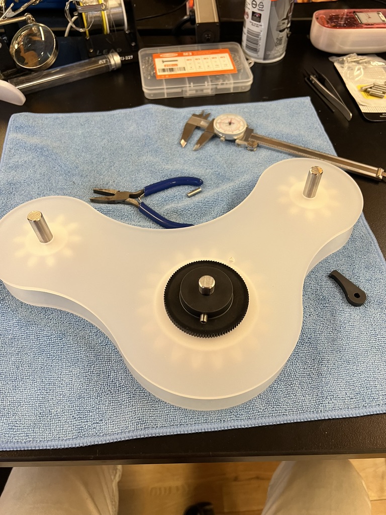 About a month of so before the project was due, I carried the delusion that I had a week less than expected to produce the work. In this period, I wanted to minimize and reduce everything I was doing to ensure that it would work. In this phase, I dropped the pendulum. I had missed my window to get parts cut professionally becuase I had not prototyped enough to be confident with the final piece and needed control over the production process to correct of unforseen mistakes.